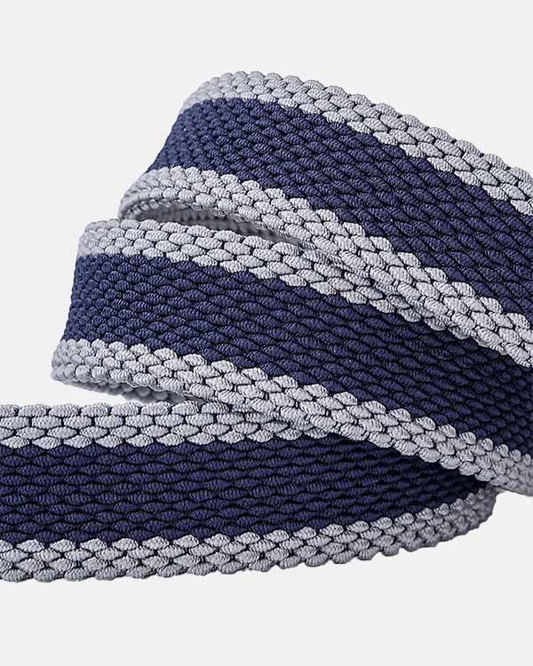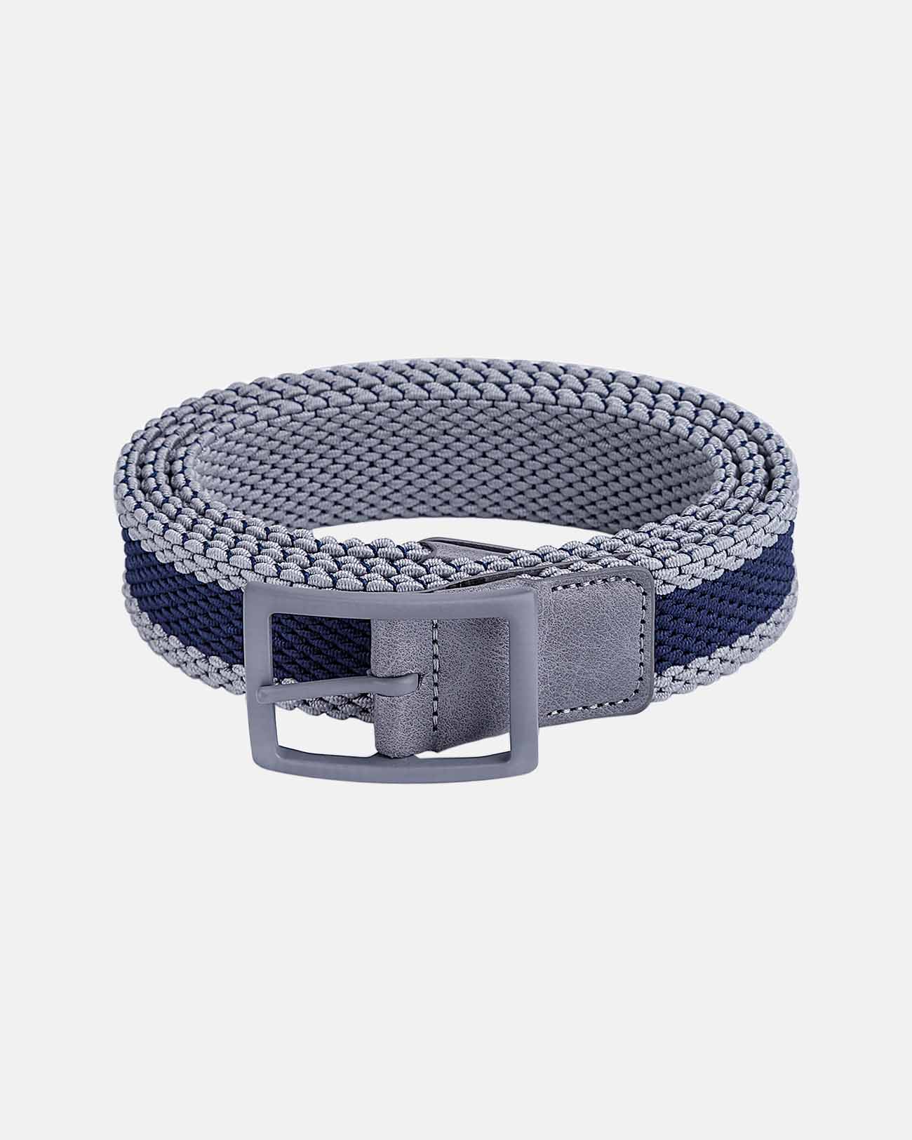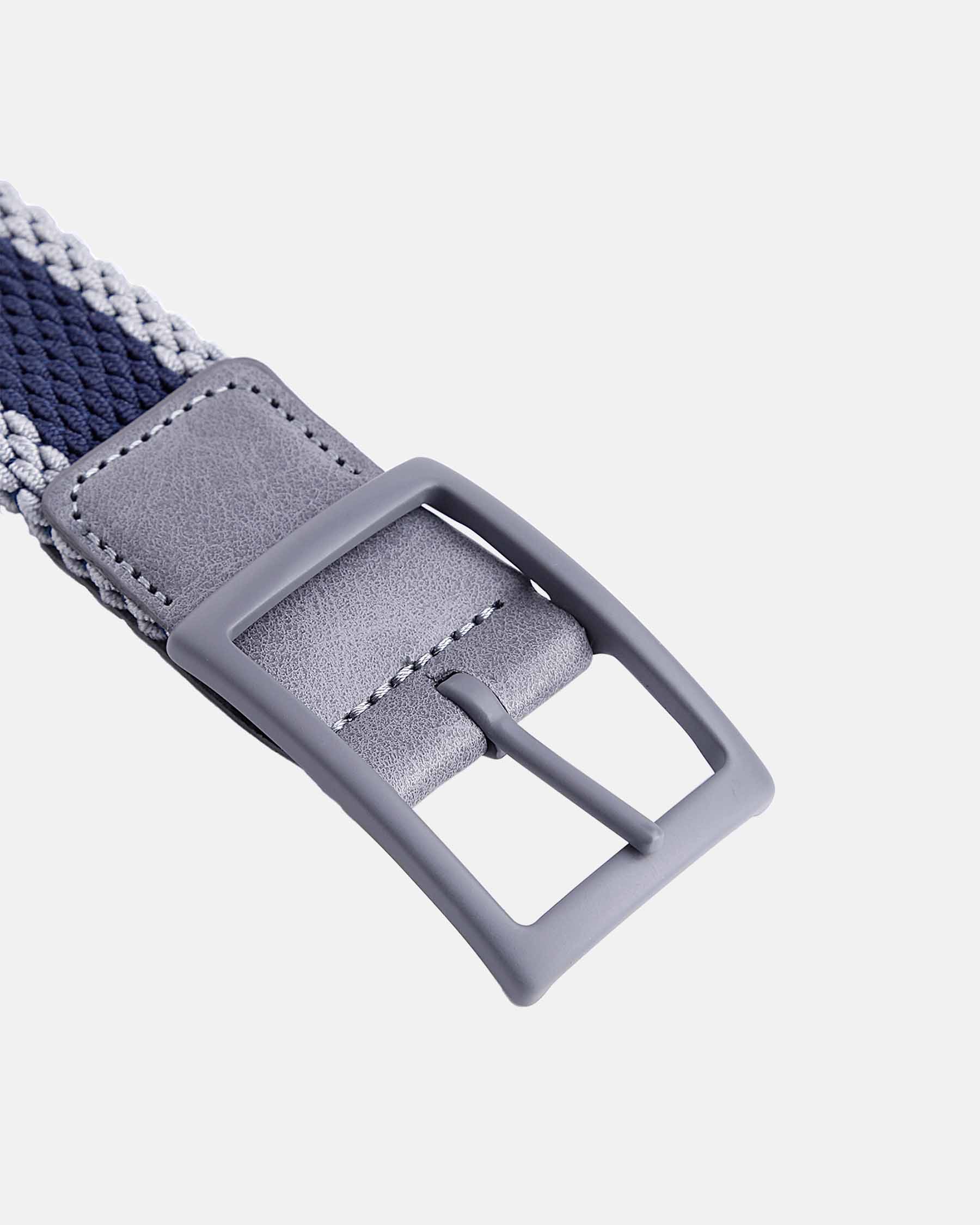 Style: Reversible Braided Belt Buckle: 100% Brass Material:ย Webbing 84% Polyester, 16% Elastane & Italian Full Grain Leather tip Stretch-fit woven webbing provides extra stretch & flexibility Width: 1.4″ / 3.5 cm Side A: Light Grey/Navy Beltย withย matching Grey Buckle Side B: Light Grey Belt withย matching Grey Buckle Designed for extreme comfort to be worn on &…