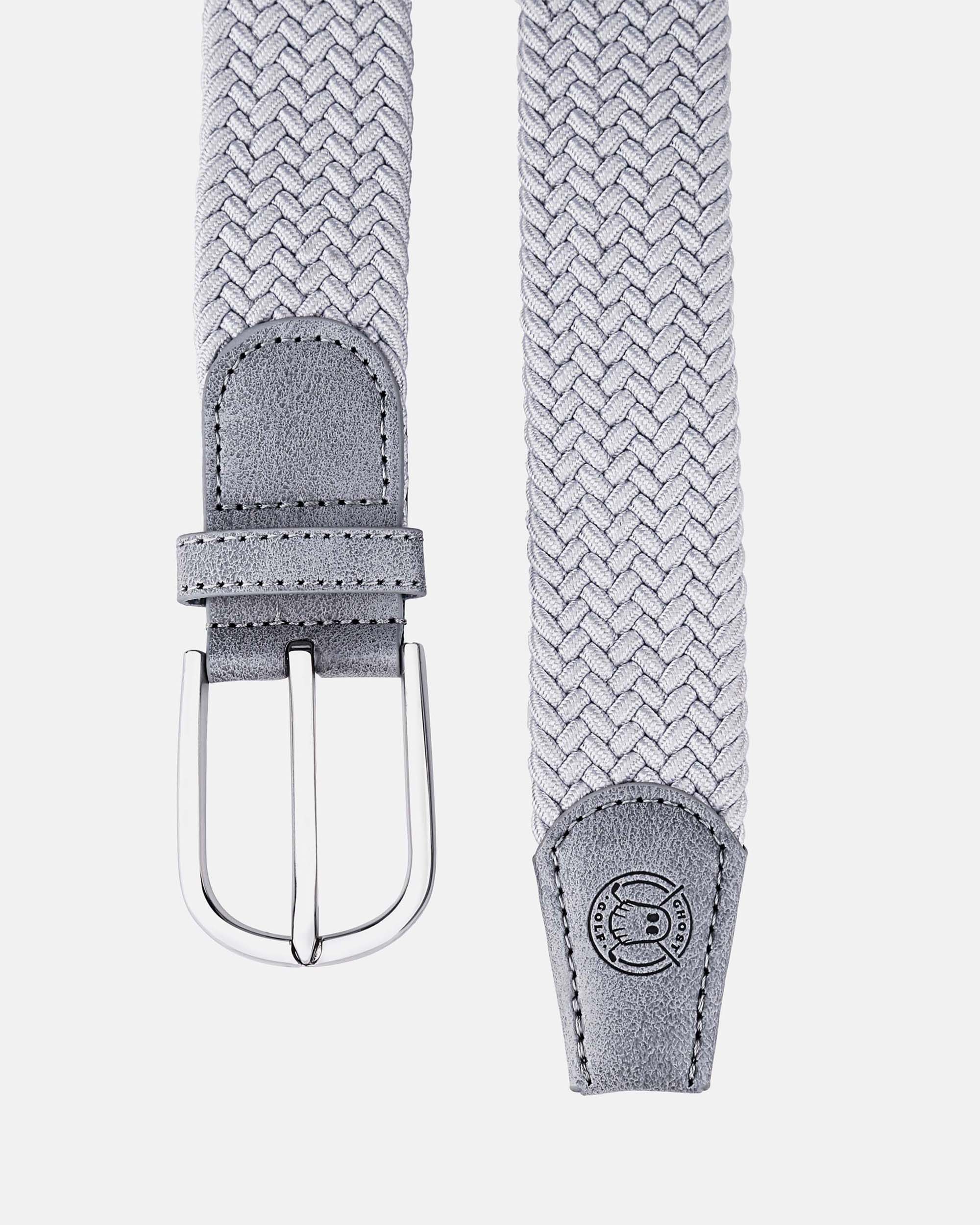Style: Braided Belt 84% Polyester, 16% Elastane Stretch-fit woven webbing provides extra stretch & flexibility Width: 1.4″ / 3.5 cm Grey Belt with Rounded Steel Buckle and Grey Leather Tail with Logo Designed for extreme comfort to be worn on & off the course Need help sizing?ย Seeย beltย sizing chartย below