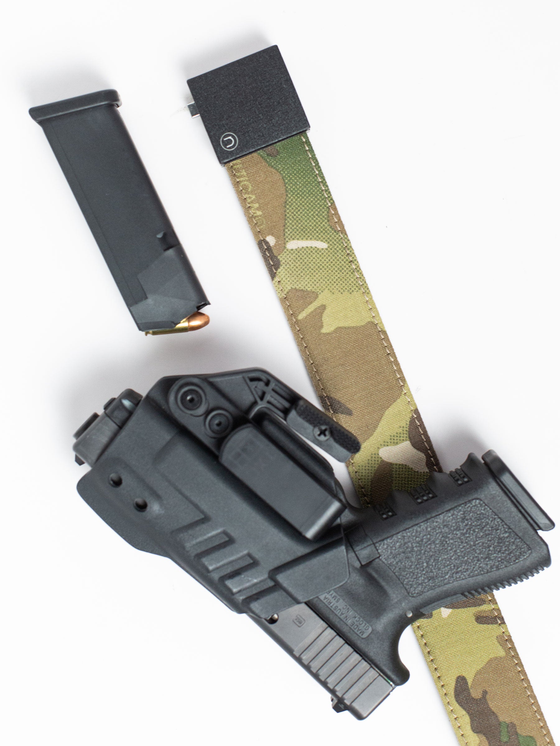 The 1.5″ Multicam® Tan nylon strap features a durable oil-tanned leather backing for a premium feel, paired with our signature EDC stiffener for uncompromising support and structure. The ultra-PreciseFit™ system offers 1/4″ micro-adjustments for a custom, secure fit, essential for appendix carry, OWB, or concealed carry.