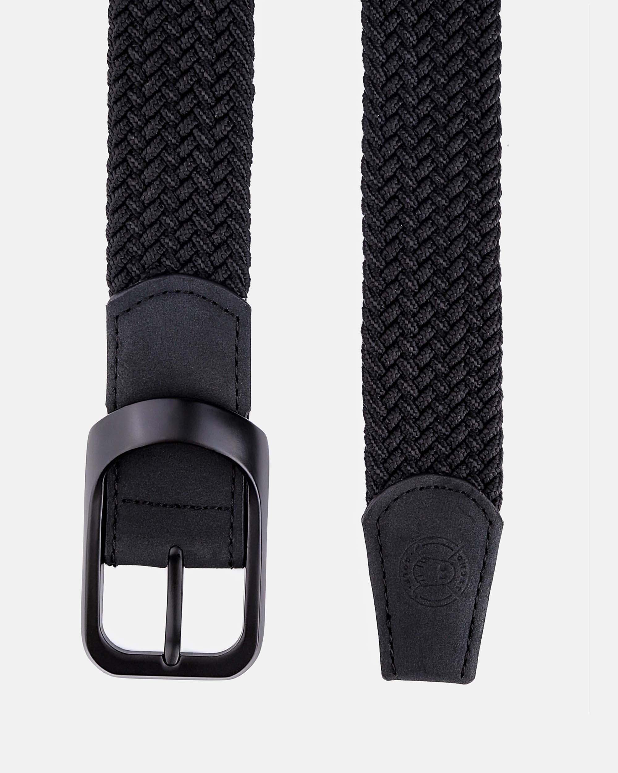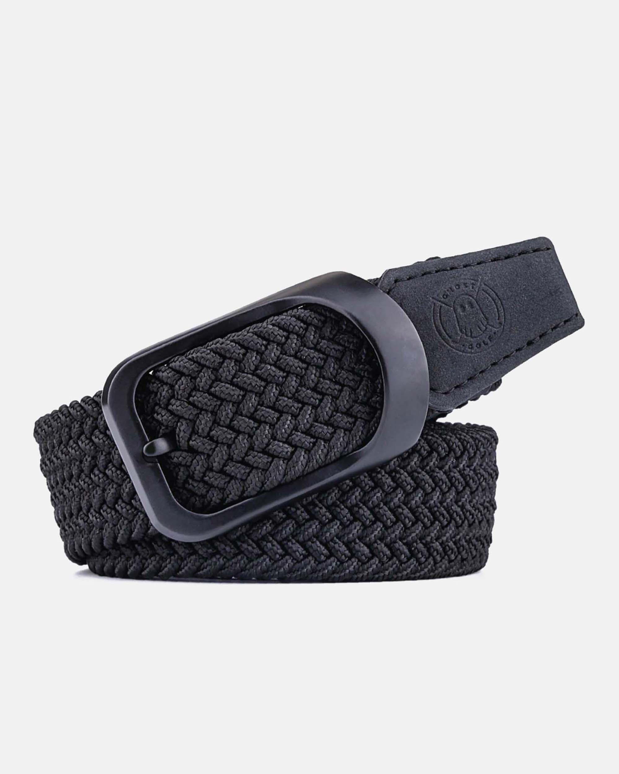 Style: Braided Belt 84% Polyester, 16% Elastane Premium Stretch-fit woven webbing provides extra stretch & flexibility Width: 1.4″ / 3.5 cm Blackย Belt with Blackย Buckle andย Black Leather Tail with Logo Designed for extreme comfort to be worn on & off the course Need help sizing?ย Seeย beltย sizing chartย below