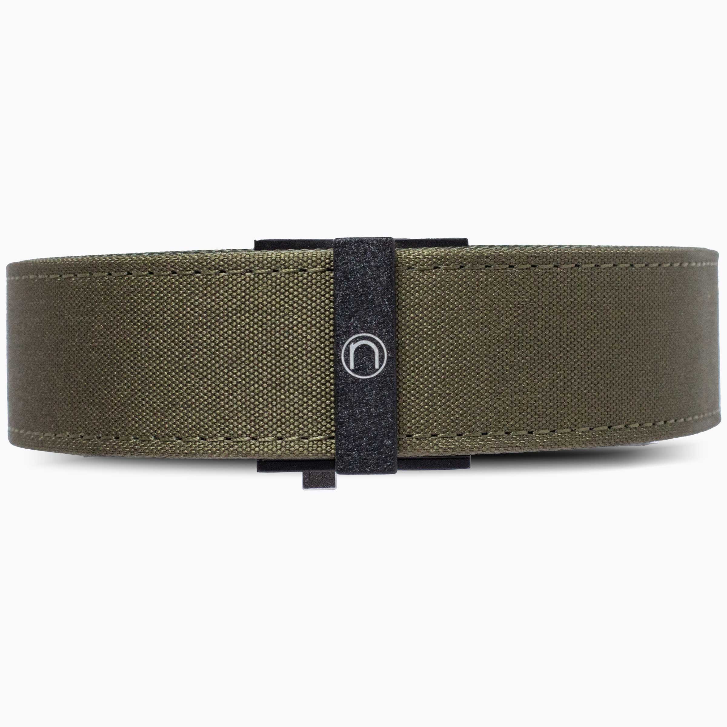 Paired with a tactical-grade OD Green nylon strap, this belt is designed for use in rough environments, high-mobility situations, and concealed carry setups. Theย strap’s sweat-resistant backing,ย 1.5″ width, andย nearly 3/16″ thickness strike the perfect balance between comfort and support, whether you’reย training on the range or moving through everyday life.